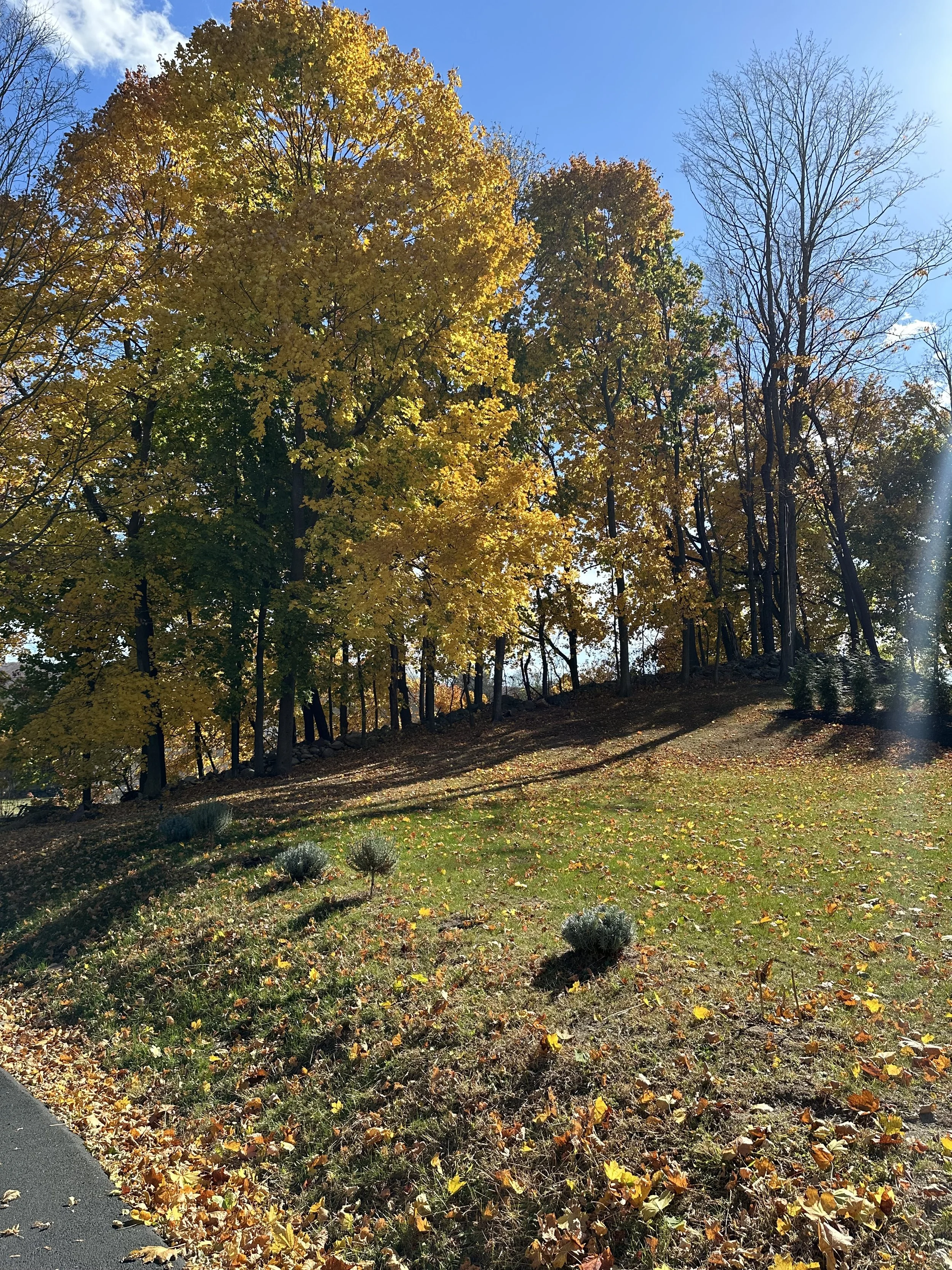 Then comes the Fall, what a wonderful change in color. As breathtaking as the green leaves are, the brown, orange, red, and yellow shades of leaves provide such a shift in scenery. Marking a transitional period for the tree, preparing for a great fall. The ground will eventually welcome a brand-new showering, an embrace, like the cycle of life, in which we shall all return to dust. Those beautiful leaves with all their splendor, return to their place of origin, the ground.